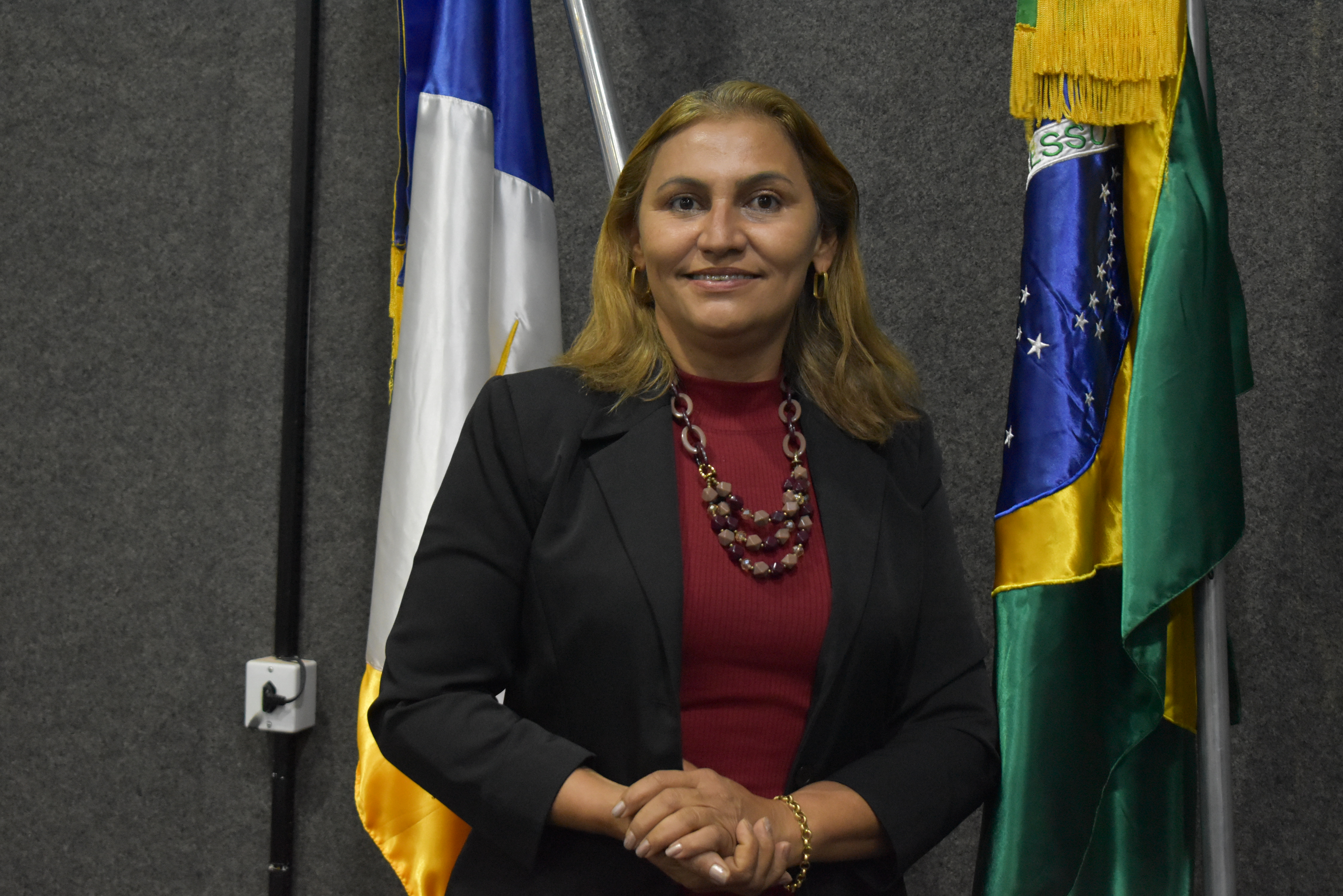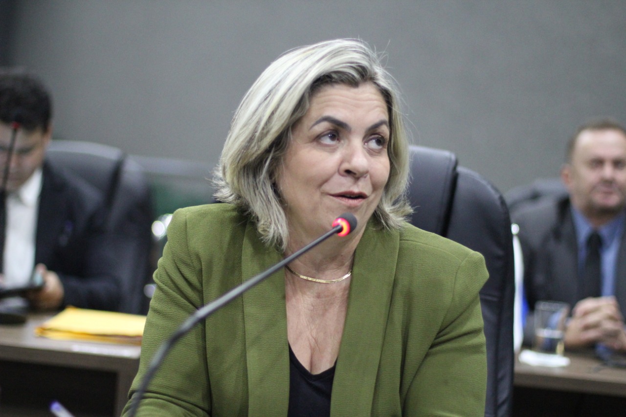 Vereadora Fátima Coelho, participando de sessão em 2019
