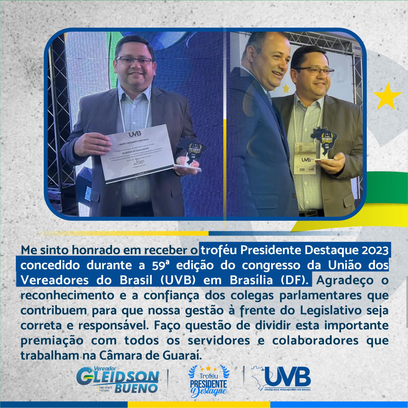 Gleidson Bueno agraciado com "Trofeu Presidente Destaque 2023"